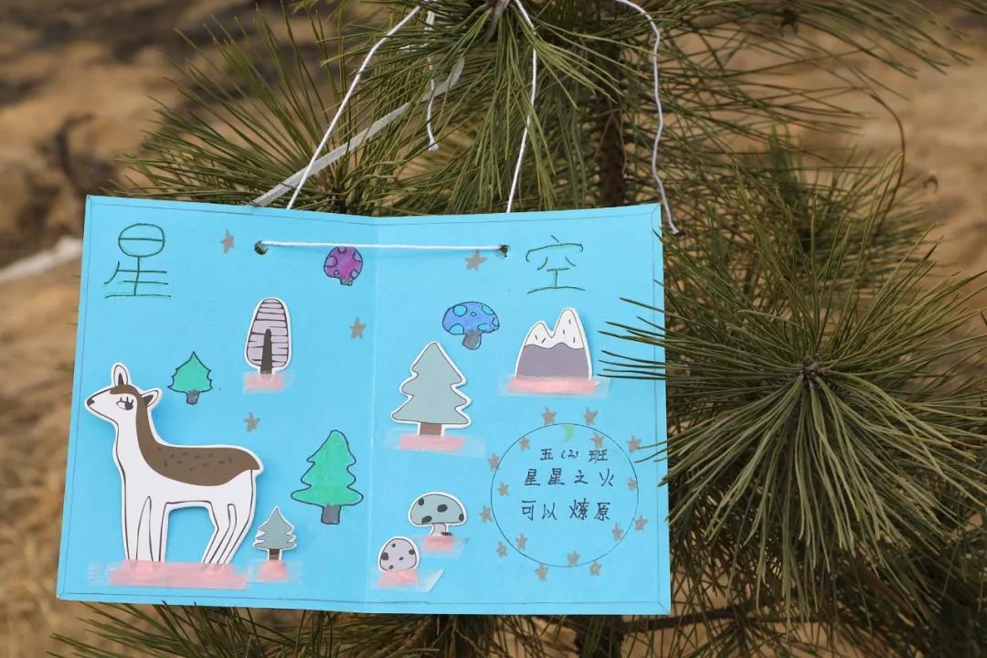 种植一份希望,梦想一片未来。以班级为单位,每班的学生把写有寄语的心愿卡系在了自己栽种的松树上。从学生微笑的脸庞上,我们能感受到他们满满的喜悦和成就感。
